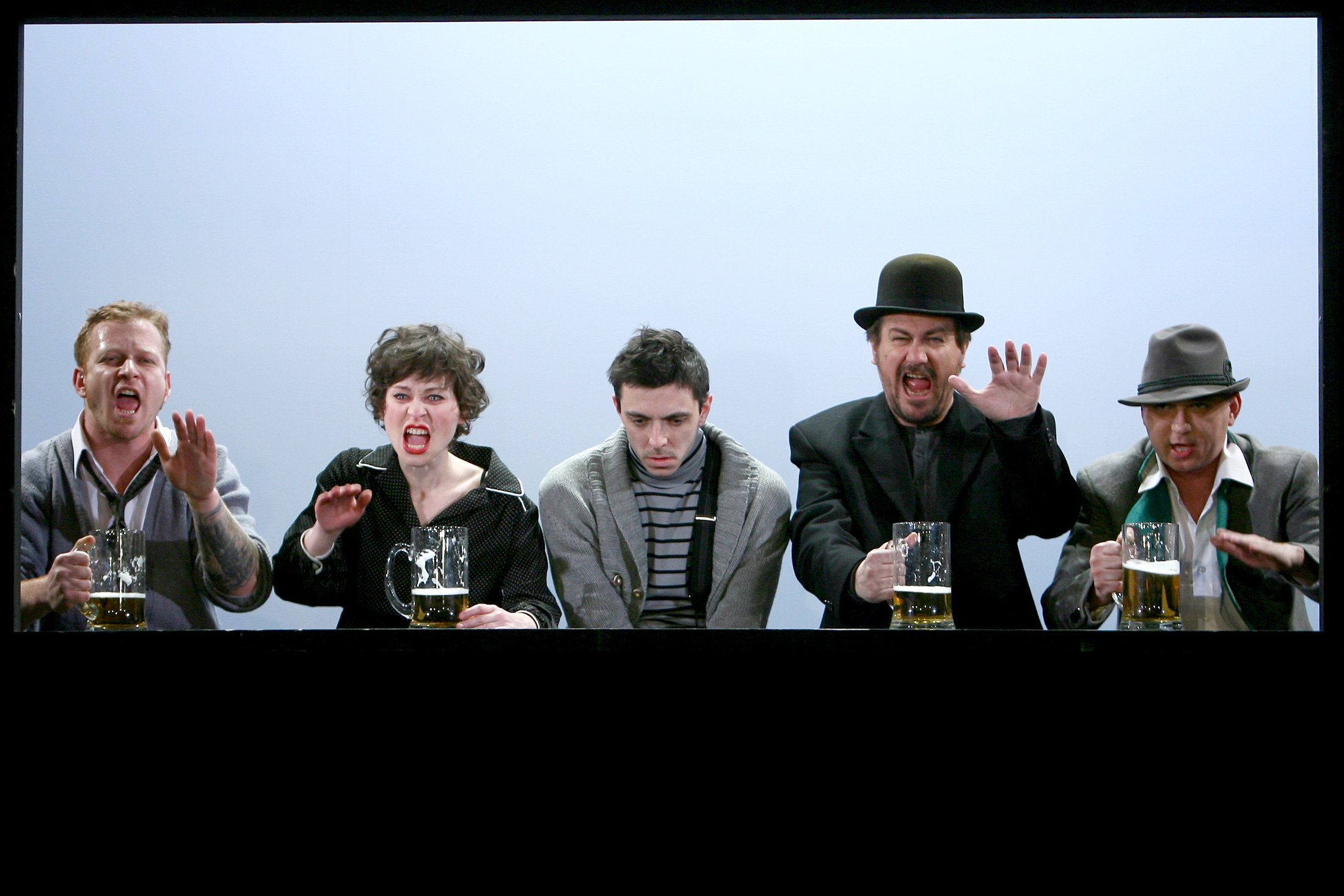 Bár lenne mire reagálni, az Örkény Színház előadásában Bagossy László rendező mégsem direkten aktualizál, hanem egyetlen pompás és mindvégig kitartó ötlettel repít vissza a darab korába, hogy ne csak felelevenítse, inkább mai életre is keltse a darab snittekre szabdalt, pergő, rövid jelenetekből álló világát. A Darvas Ferenc békebeli füstös kabarékat idéző zongorajátékára megelevenedő müncheni Oktoberfest színes és bavúros képei fenntartják a nézői élvezetet, de a remek vizuális kompozíciókba illesztett stilizált jelenetek folytonosan az alakok drámai öncsalására koncentrálják a közönség figyelmét. Nincs kegyelem: a színészek érzékeny és pontos játéka, Bagossy biztos rendezői keze minden nosztalgikus külsőségről lehántja a lehántanivalót, és felmutatja a belső motivációk alantasságát vagy csak az ostoba és ma is érvényes, „ödön von horváthi” butaságát. Nem is lehet illúziónk, hiába kerekedik az előadásnak „boldog” végkifejlete.