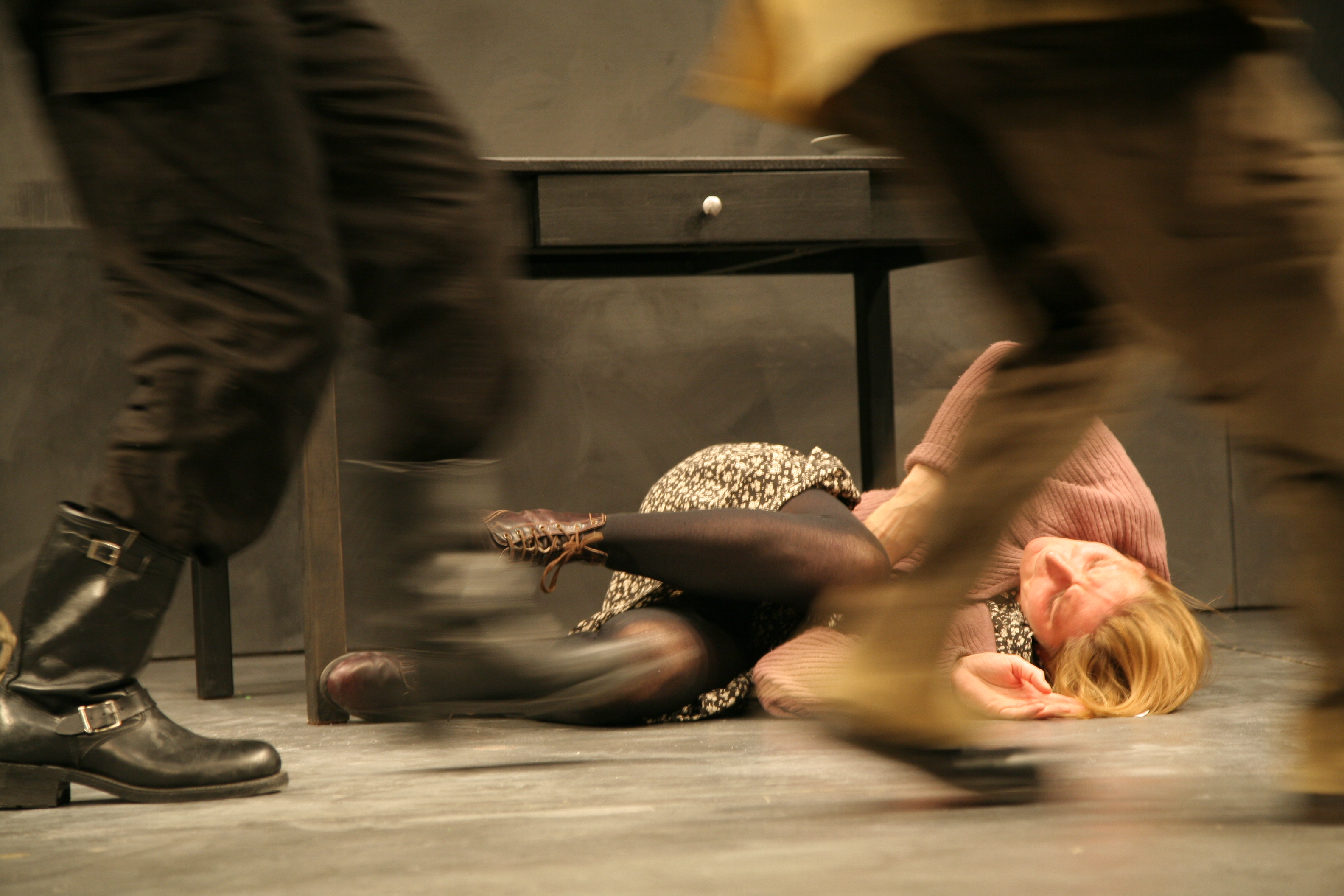 When: 2077. Where: somewhere on Earth. In this world everything is controlled from above, emotions as well as works of art or relations with relatives. The past has been erased. But still, accidents do happen… In Chair a woman has been hiding a child in her apartment for 26 years. The boy is unable to grow up and cannot leave the apartment, until the day when they are visited by the authorities. In the tragical/comical play, Have I None, the main characters are a married couple who are loyal to the system. But when a young man comes to visit, and based on a photograph long thought destroyed claims to be the woman’s younger brother, they gradually lose themselves. In the third play, People, the characters seem to be the last survivors on Earth. Four people are fighting for their lives, or for the welcome release of death.