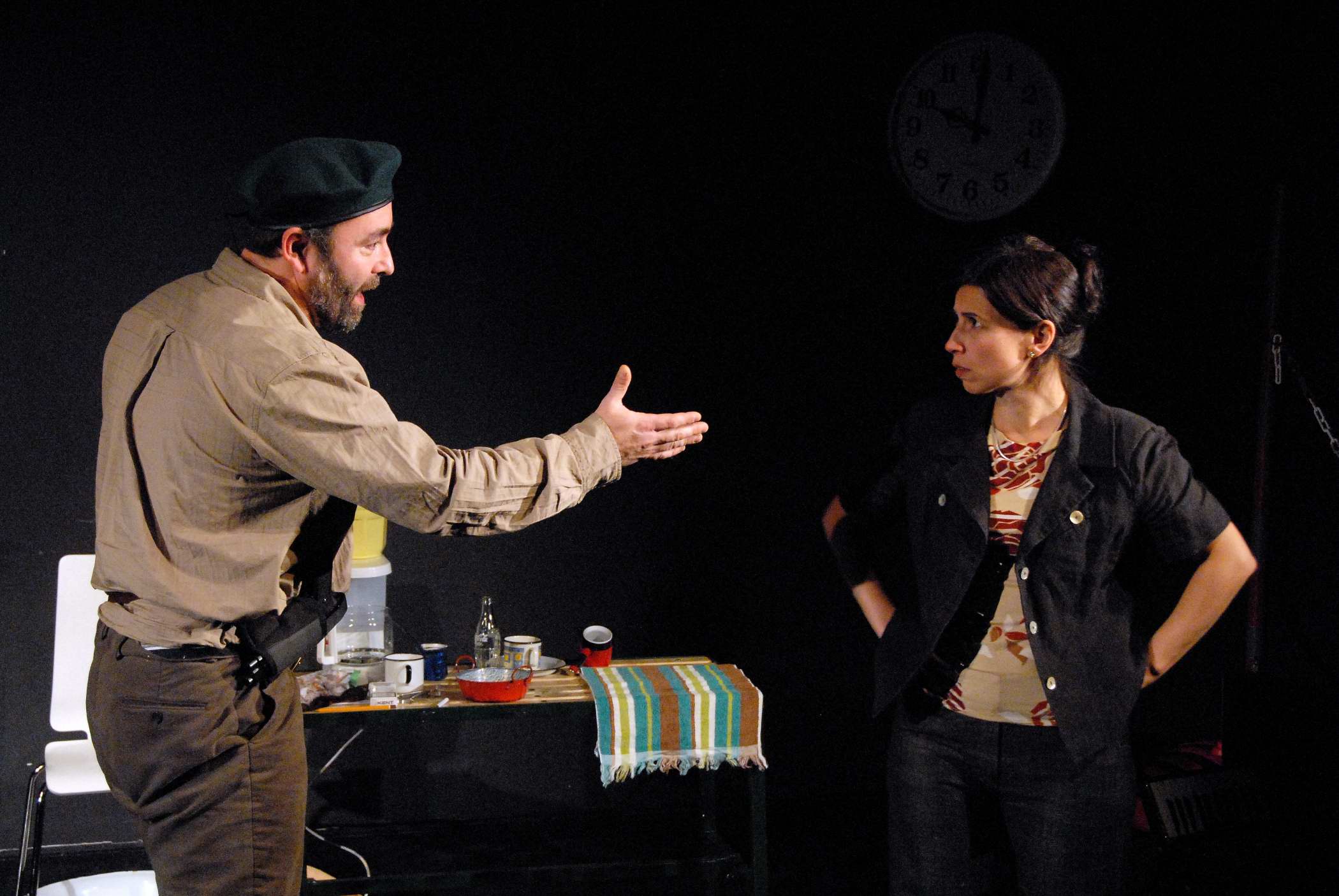 Ha a mozgó találkozik a mozdulatlannal, akkor ütköznek, az ütközés pedig fáj, mindkét félnek. A vámos kitartóan védi néhány négyzetméternyi hatalmát, de a nő szünet nélkül támadja erkölcsi, férfiúi, emberi pozícióit és sikerül néhány olyan mély ütést bevinnie, amitől lefoszlik az egyenruha, és csak egy másik ember marad, aki már megérinthető, megszólítható. És küzdenek tovább. Egyre mélyebb sebeket szakítanak fel egymásban, de már nem tudják abbahagyni, minden fájdalmukat egymásra zúdítják. Kavarognak a háborús borzalmak, a családi szenvedések, az elveszett szerelem és az elvesztett apa okozta traumák, és ez a két ember még mindig talpon marad. Nem adják fel. Lihegve bámulják egymást, a kezük összeér és nevetnek. Lehet ezen nevetni – ezen már csak nevetni lehet. Két erős ember története ez, akik tudnak túlélni.